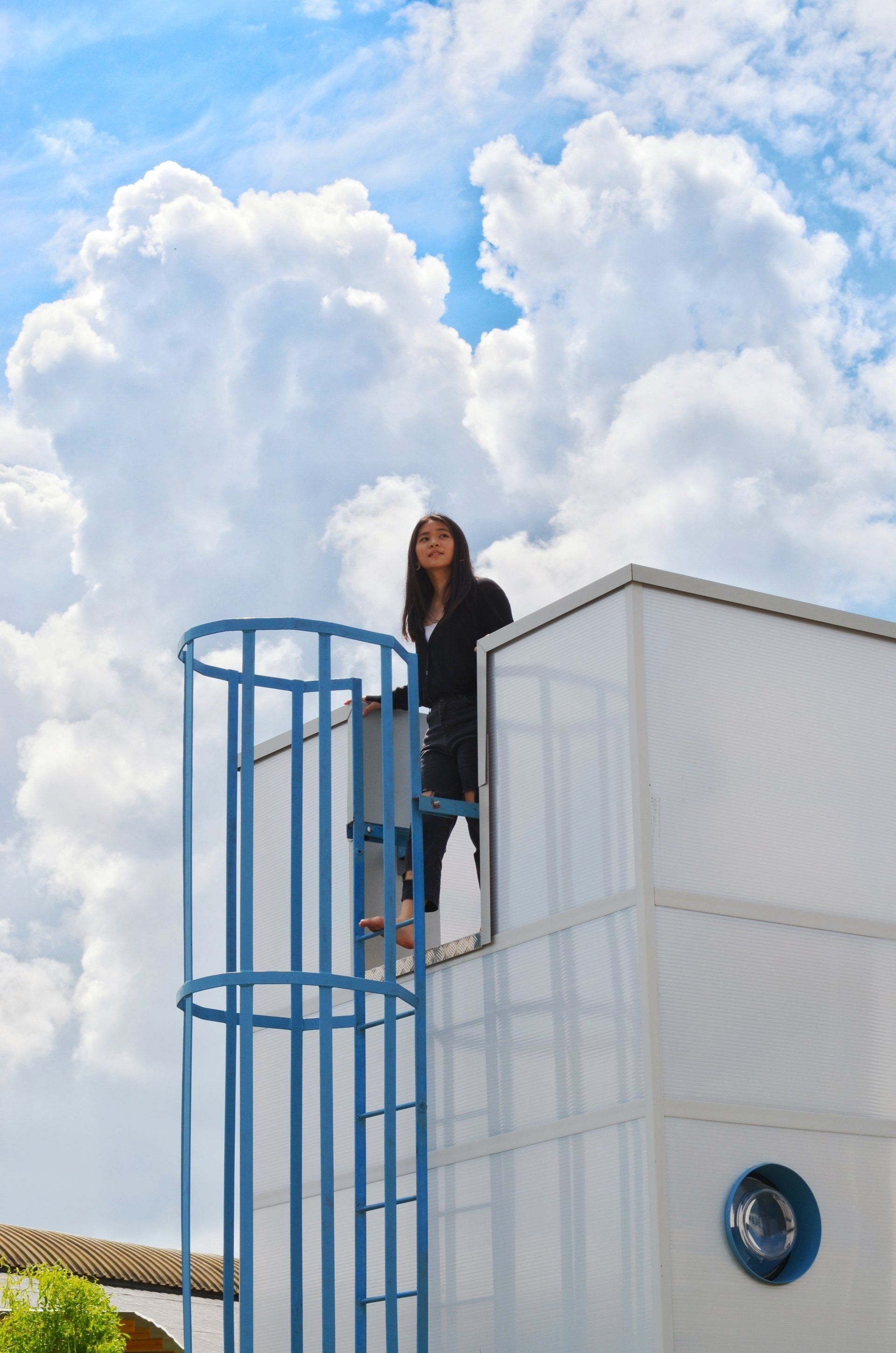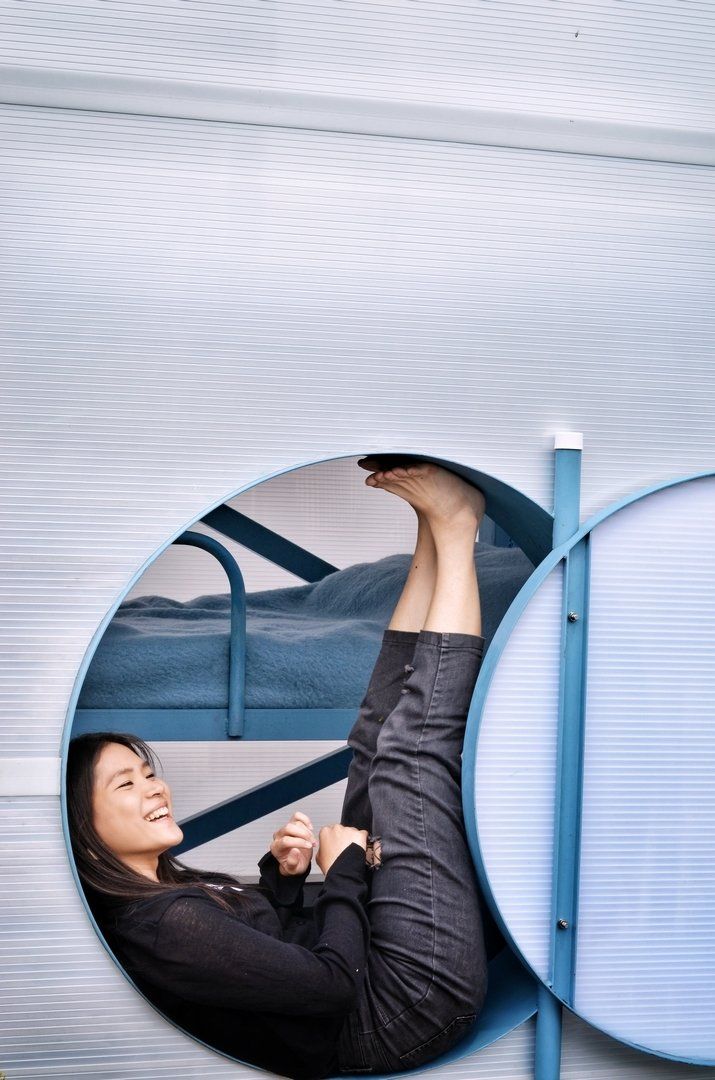 Dit object is geïnspireerd op de Rotterdamse haven en ontworpen met speelse details. Je vindt je weg naar binnen door een ronde deur en klimt naar je privé dakterras voor een overzicht van de camping.