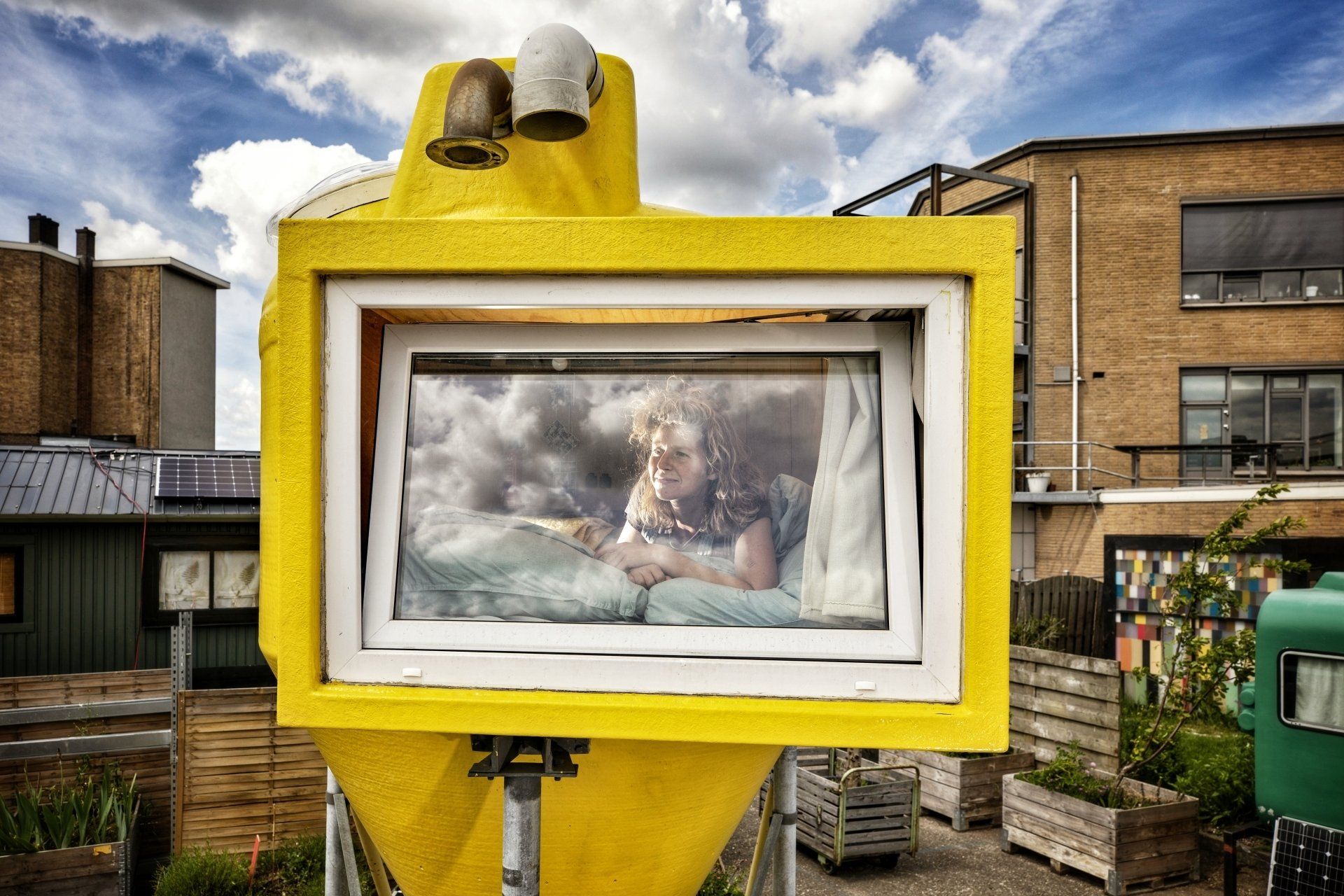 De opgang van Lemon Loft geeft je het gevoel een ruimteschip te betreden. Waarna bovenin dit gele object een opgemaakte bedje op je wacht. Door het grote raam heb je een panoramisch uitzicht over de camping en al de andere bijzondere ontwerpen. Het interieur van Lemon Loft is prachtig afgewerkt met hout.