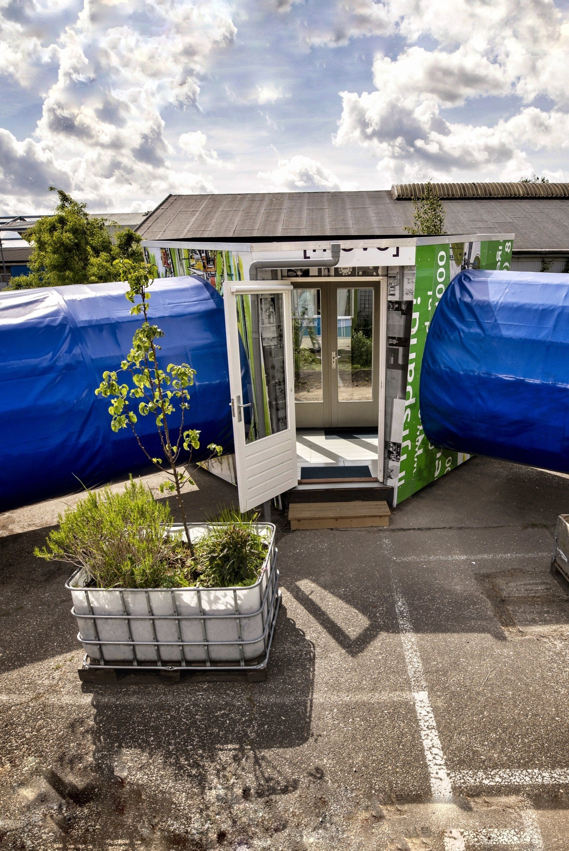 Er is bovendien een huiselijke centrale ruimte om te delen. Musca Domestica is gemaakt van restmaterialen zoals voormalige veevoeder silo's en sloophout.